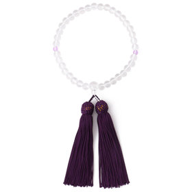 澄んだ輝きを放つ新丸水晶を使用した、日本製の上質な御念珠。深みのある紫の色合いが、品格と落ち着きを感じさせるデザインです。女性の手にしっくりと馴染む、ちょうど良い長さで持ちやすく、扱いやすい仕様。格式ある場面にふさわしい、洗練された一品です。