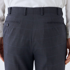 スーツやパンツのサイズ確認は、直立姿勢だけではなく、椅子に座った時の負荷。しゃがんだ時の負荷を考えたサイズ選びを必ずお願いします。ヒップ・太もも部分の生地にゆとりがない場合等の無理なサイズ選びは、体型や動きに関係なく生地や糸に負荷がかかり、「縫い目のほつれ」「生地の破れ」が起こります。また、両太もも同士が当たる場合や生地にゆとりがない場合、股ズレで生地が破れる可能性がございます。実店舗での商品確認・試着にて正しいサイズの購入をお勧めいたします。サイズが合わない事による「縫い目のほつれ」「生地の破れ」は「返品」「交換」「無償修理」はいたしかねます。また商品状態により修理が出来ない場合もございます。