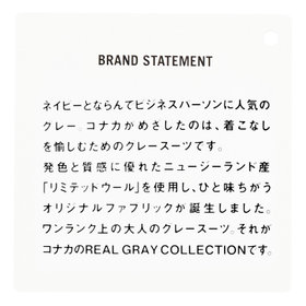 英国の伝統的な技術やシルエットを現代風に合わせて変化させています。コンフォートスーツは、ジャケットをノーパットにし、スラックスはショートプリーツのテーパードに仕上げています。スタイリッシュであり、快適に着用できるスーツです。
