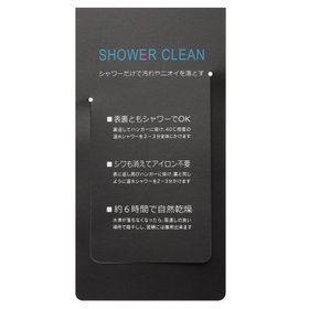 家庭の温水シャワーだけで、汚れやシワ、ニオイを洗い流すことができます。温水シャワーで洗い流すだけなので、専用の洗剤もネットを必要ありません。ウォッシャブルスーツよりも、お手入れが簡単になりました。普段使いはもちろん出張先のホテルでも気軽に洗い流せてオススメです。※アイロンをかけなくてもご利用が可能ですが、気になる場合は軽くアイロンかけをしてください。「シャワークリーンスーツの洗い方」1.ジャケット・スラックスを裏返す。2.40℃程度の温水シャワーでそれぞれ2~3分洗い流す。3.表に返しす。4.40℃程度の温水シャワーで2~3分洗い流す。5.水滴が落ちなくなったら陰干しをする。※約6時間で乾きます。