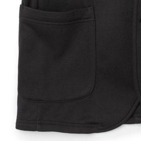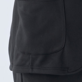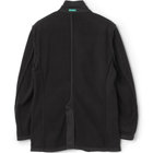 クリアな表面感でドレス見えするバックフリースジャケット。胸ポケットを無くしたスッキリしたフロントデザイン。ポケットはフラップなしのアウトポケットでカジュアル感をプラス。ポリエステル100%のフリース起毛素材を使用。起毛素材は繊維の間に空気層ができる為、優れた保温性。また使用するポリエステルは軽さと強度があるストレッチ素材。空気層を含み通気性があるので、速乾性が高くドライな肌触り、ご家庭の洗濯機で安心して洗えノーアイロンで着用可能です。