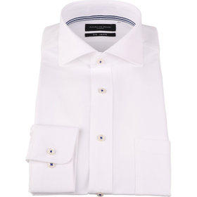 【WEB限定/OUTLET/汚れ・キズ等有】【JOHN PEARSE Black】【ノーアイロン】ホリゾンタルワイドカラードレスワイシャツ/ホワイト/釦付糸:ネイビー/ULTRA MOVE/ニット素材